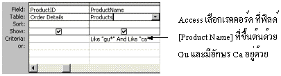 การประยุกต์หลายเงื่อนไขด้วย "OR" และ "AND"ให้กำหนด Expression ในฟิลด์ หรือการกำหนดเงื่อนไขของฟิลด์ให้อยู่ในบรรทัดเดียวกันมีความเป็น "AND" แต่อยู่คนละบรรทัดมีความหมายเป็น "OR"
